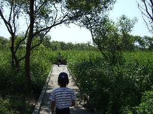 | 道の感じ | 沼。カエルになる寸前のおたまじゃくが時々 池野表面に来てあっぷあっぷしてました。 |